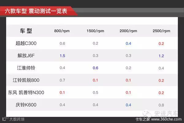 ● 震动及噪音对比 江铃表现最好