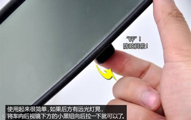 如果被后方车辆的远光灯晃到,这时候使用防眩目后视镜是最好的解决办法,自动的打开开关即可,手动的需要用后视镜下方的小按钮切换一下,这是最快最有效地解决办法。