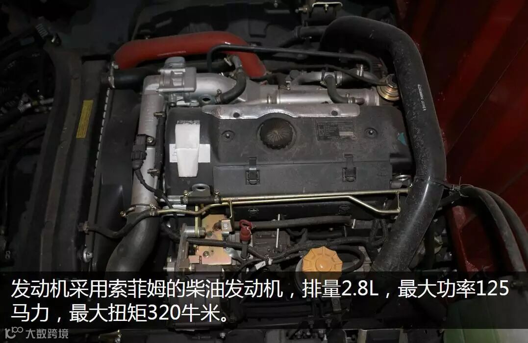 发动机采用索菲姆的型号为SOFIM8140的柴油发动机,排量为2.8L,最大功率125马力。最大扭矩320N·m。