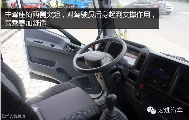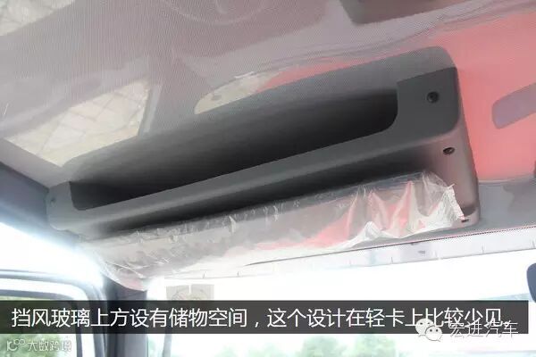 内饰方面,超越C500做得比较用心。车辆配备了电动车窗,车门上也设计有储物空间。内饰的包裹也比较用心,算是业内做工比较精细的,不仅驾驶室后侧包裹严密,顶棚包裹后还有塑料薄膜保护。包裹严密有利于驾驶室的隔音,降低驾驶室内的噪音水平。