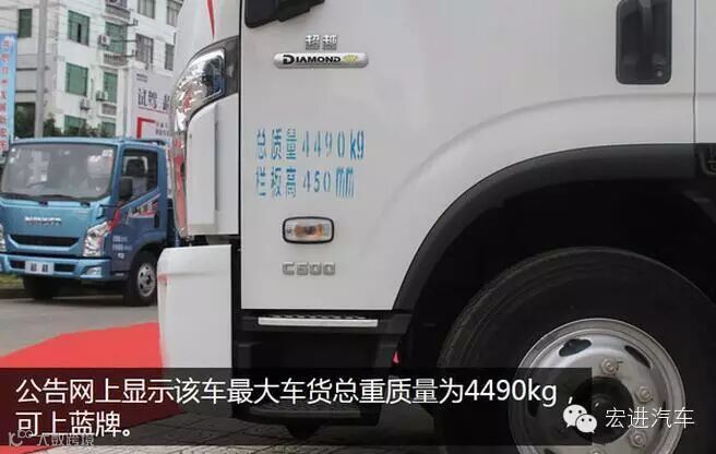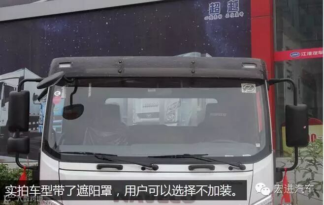 承载力方面,该车最大车货总重质量为4490kg,可上蓝牌。实拍车型带了遮阳罩,用户可以选择不加装,大灯角度可调。