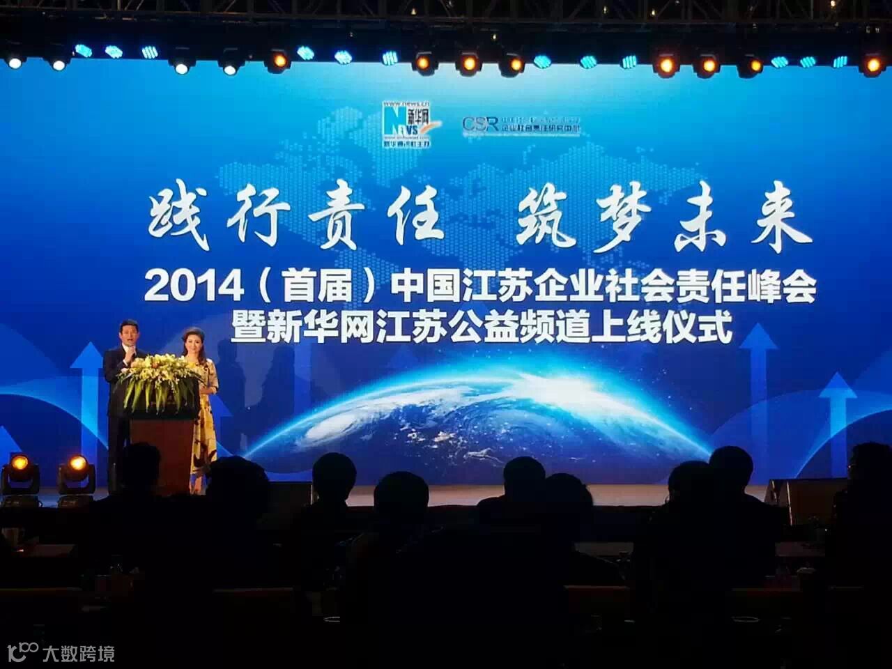 1月11日下午,由新华社新华网、中国社科院企业社会责任研究中心、江苏省苏商发展促进会联合主办,以“践行责任,筑梦未来”为主题的“2014(首届)中国 江苏企业社会责任峰会暨新华网江苏公益频道上线仪式”在南京金陵饭店举行。