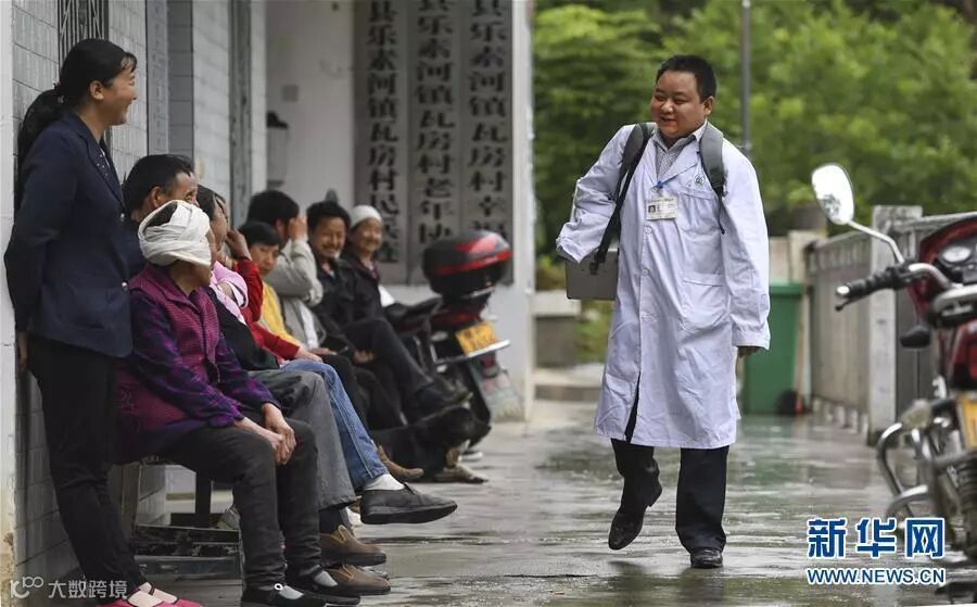 5月28日,何永清(右)一大早出门“送医上门”后回到村卫生室时,门口排满了等待就诊的村民。何永清是陕西省略阳县乐素河镇瓦房村卫生室的一名村医,幼年时因车祸失去右臂。2006年7月从汉中市卫校毕业后,他选择回到山大沟深的秦岭腹地故乡工作。十多年来,何永清坚守在基层卫生第一线,乡亲们亲切地称他为“我们的独臂村医”。新华社记者陶明摄
