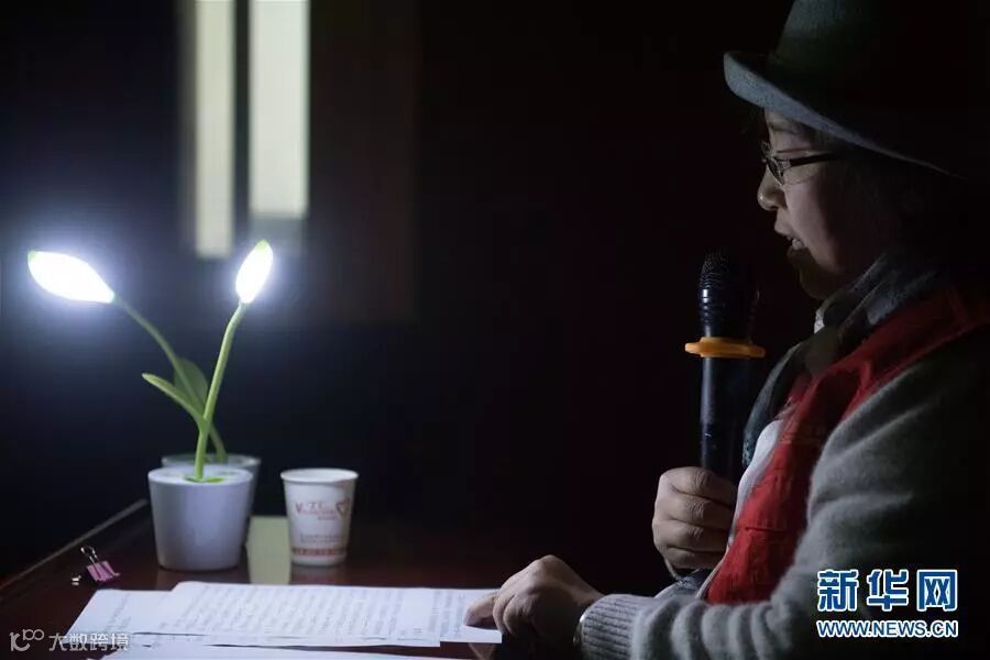 4月11日,吴素环在中国盲文图书馆桐庐县支馆为视障人士解说电影《可可西里》。65岁的桐庐老人吴素环是一名进行性肌萎缩症患者,也是一名无障碍电影解说志愿者,自2015年起已为当地视力障碍者解说四部电影,每部电影上万字的解说词都由她自己写成。新华社记者翁忻旸摄