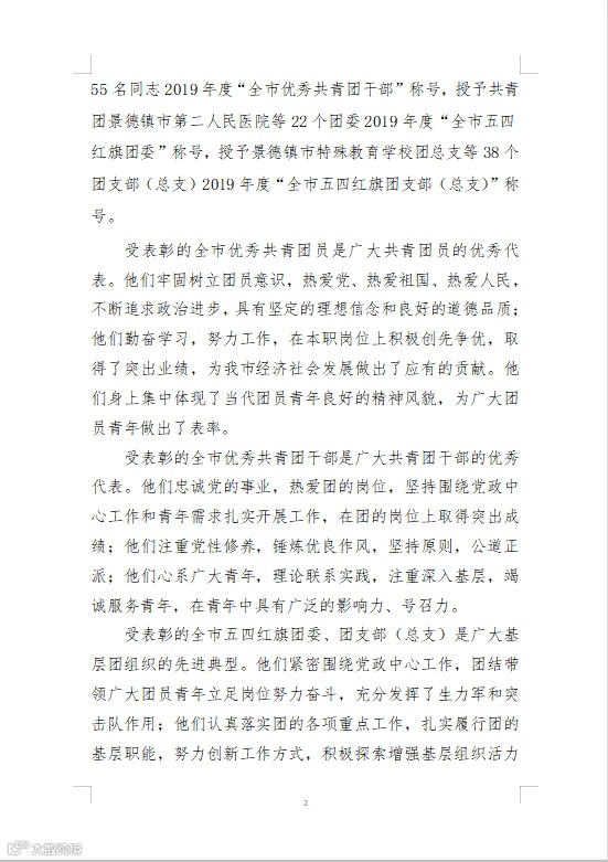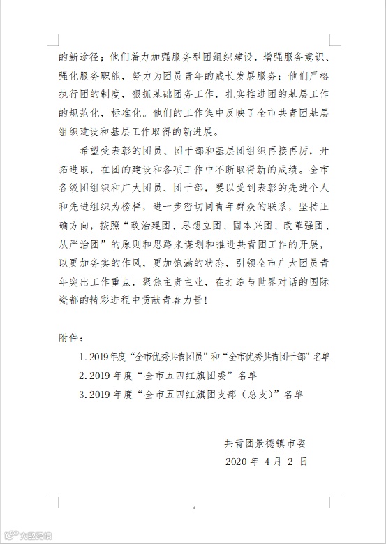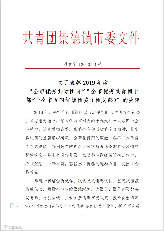 市委组织考评,合盛公司盛梓鸿、刘悦同志分别荣获2019年度“全市优秀共青团干部”及“全市优秀共青团员”荣誉称号。