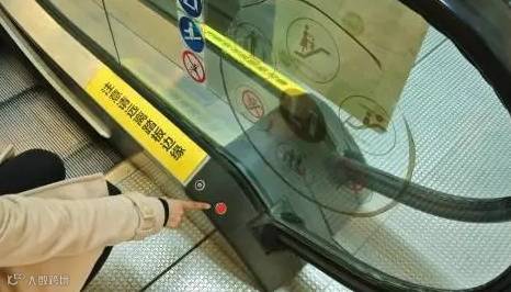 在每台扶梯的上部、下部都各有一个紧停按钮。一旦扶梯发生意外,靠近按钮的乘客应第一时间按下按钮,扶梯就会在2秒内缓冲30-40厘米自动停下。