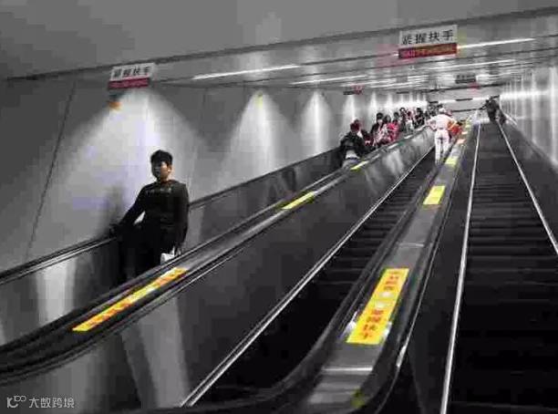 3、穿长裙子或手拎物品乘坐扶梯时,请留意裙摆和物品,谨防被挂住。