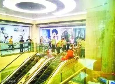随后,一名营业员慌乱中把身边的小男孩抱走,另一名营业员也慌忙跑开。电梯此时停止了运行。