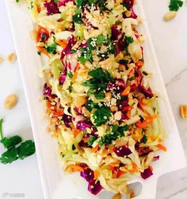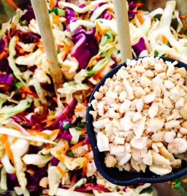 包菜、胡萝卜、葱花、花生碎、盐、醋、辣椒油、香油、熟芝麻、鸡精
