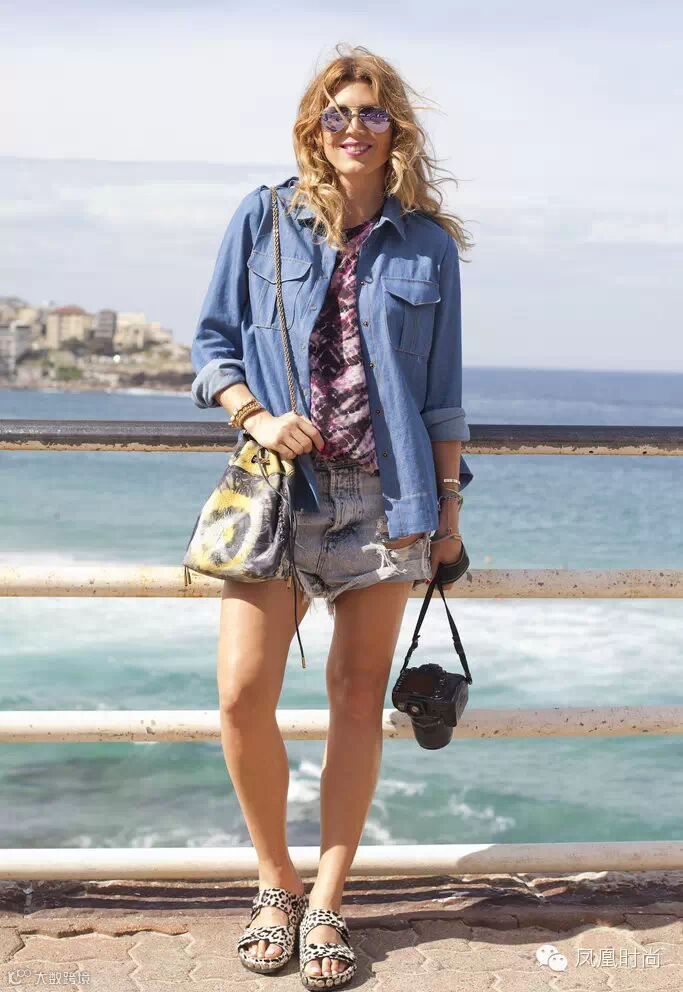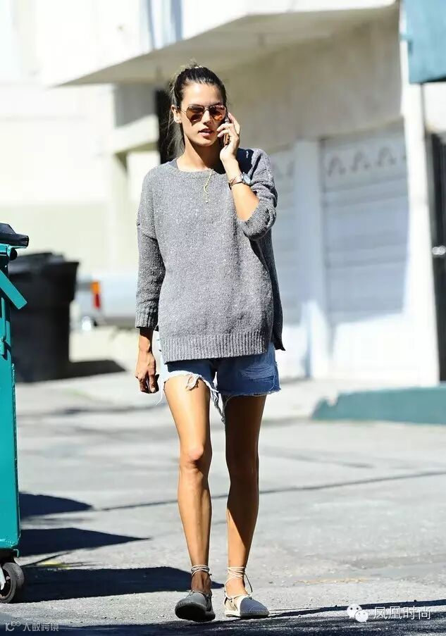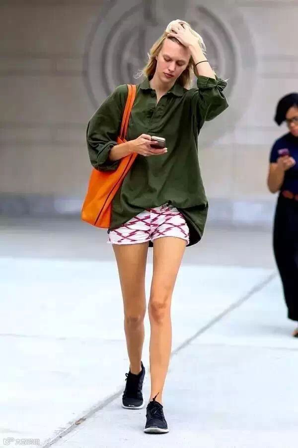 上下身比例不协调是很多女生都面临的困扰,这种身材在搭配短裤的时候,可以选择稍微长一些的上衣(尽量不要淹没短裤)。