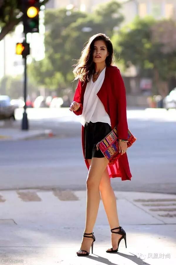 尽量露出高腰短裤的边缘,这样会提高腰线。而且开衫的下摆会帮助你遮盖身体的真实比例,这样穿出去,五五分身材?谁信呀~