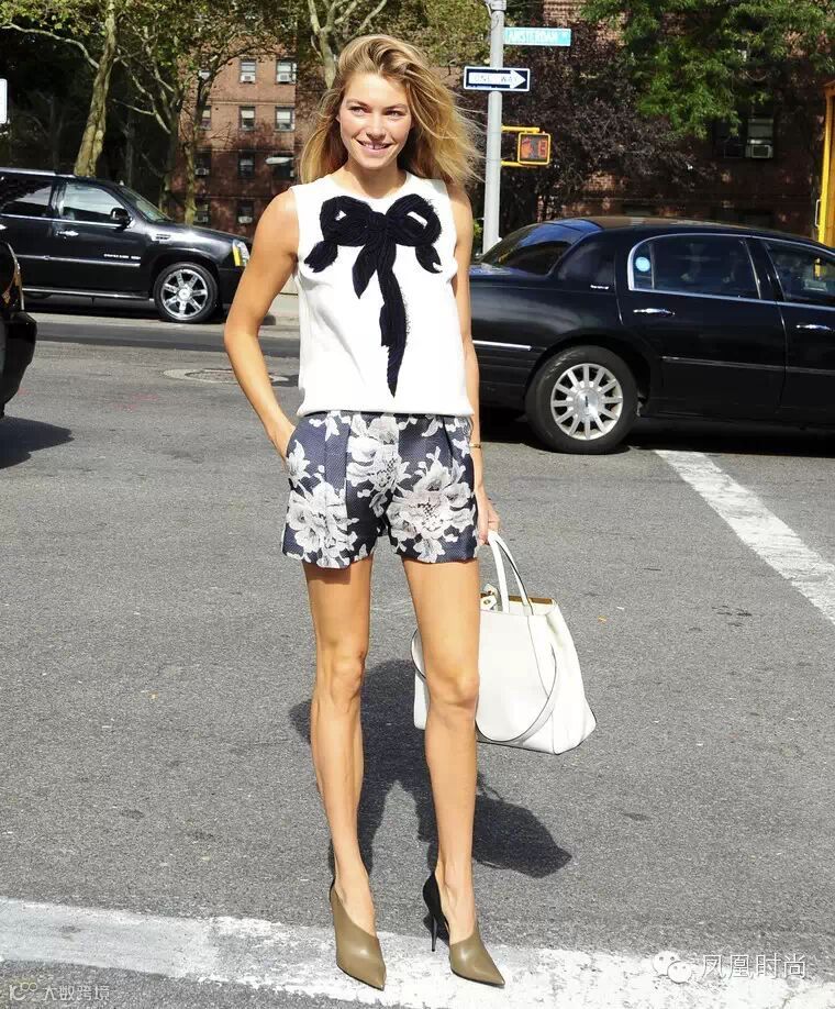 选择的上衣如果不能露出你费尽心思挑选的高腰短裤,就一定要露出腰线,这样才能够将你的身材比例重塑到合适的位置。