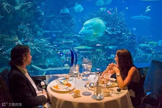 客人如果想在海鲜餐厅中就餐的话,他们将被潜!水!艇!送到餐厅,这样他们就餐前可以欣赏到海底奇观。