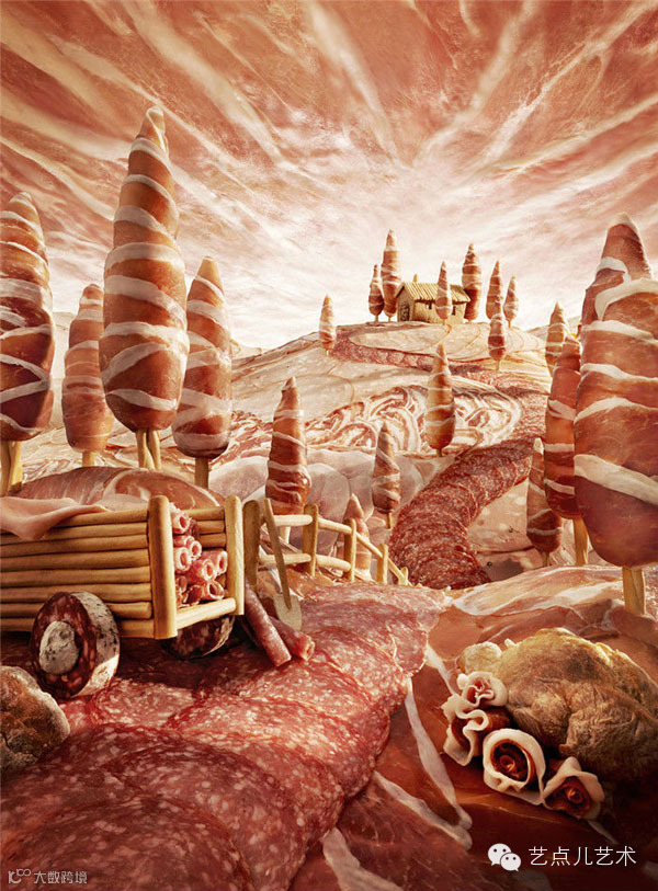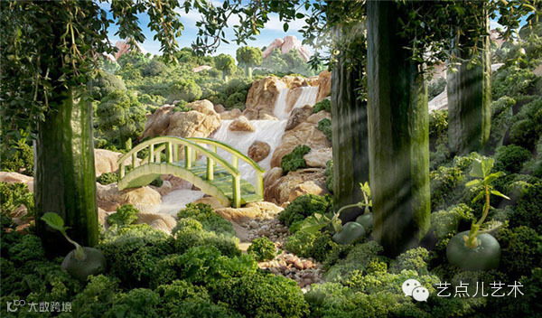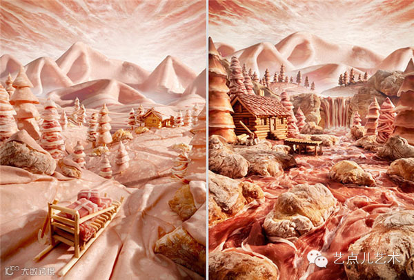 摄影师Carl Warner就是这些场景的设计者。他用艺术家特有的灵感,把各种梦幻般的场景展现给大家,如果你没看清细节,甚至察觉不出这是用食物建造的。
