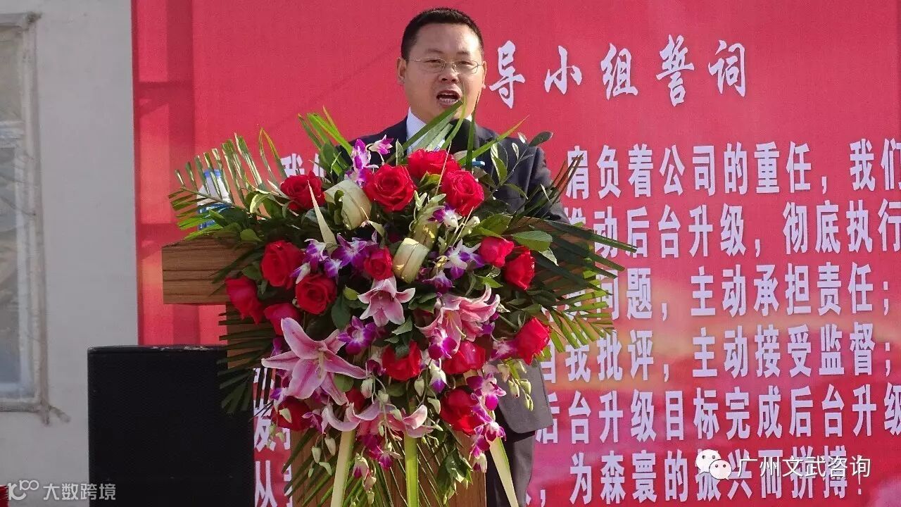 紧接着,文武咨询的创始人、总经理叶老师发表讲话。他以清晰的逻辑阐述了森寰目前的困境。对以王总为首的领导们以身作则支持后台升级表示赞赏。他表示文武项目组一定不负所望,团结在森寰大家庭里,和森寰人一起奋斗,换以森寰全新的面貌,相信后台升级一定会成功。