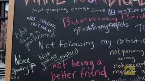 一个名叫A+(A Plus)的美国新闻网站做了这样一个社会实验,他们在街头挂起了一个巨大的黑板,鼓励人们写下那些隐藏在内心深处的遗憾。