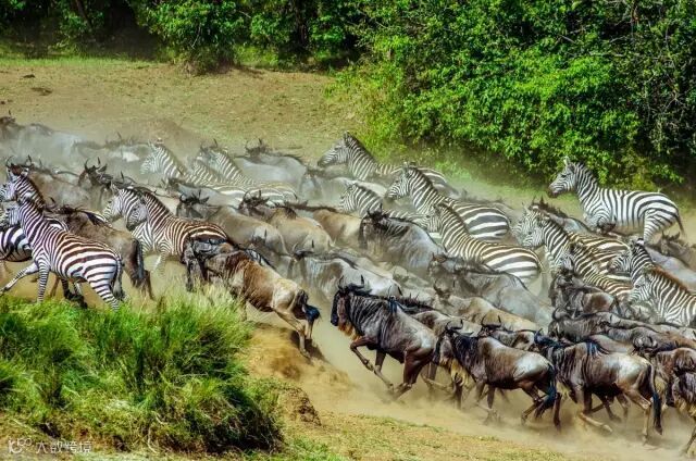 成千上万的动物宿命般地大迁徙,浩浩荡荡。