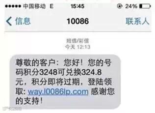 谭女士收到10086的短信,说她手机号码积分可兑换几百元短信费。她点击短信上的网址,输进身份证和银行卡号,结果卡里几万块钱不见了。警方提醒:短信为“伪基站“冒充10086所发,内容通常是积分兑换、或提示账户不安全,并缀上链接网址。