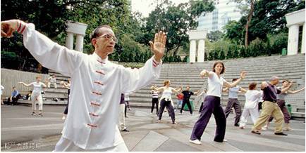 每天早晨太阳刚起,就看见公园里一群老爷爷老奶奶做着太极,但老美对扇巴掌撞树的动作还是不太能理解。