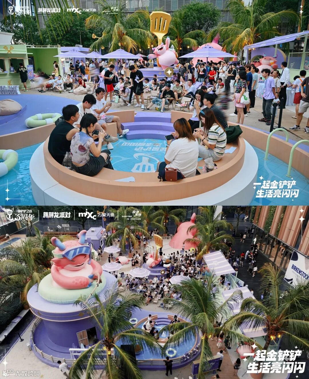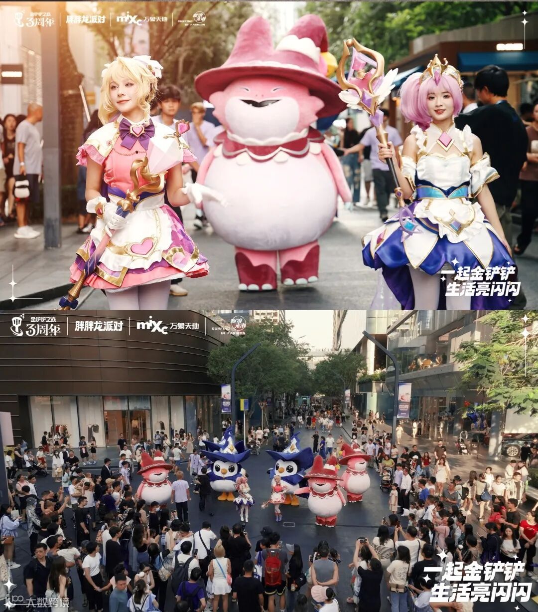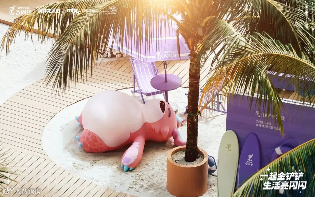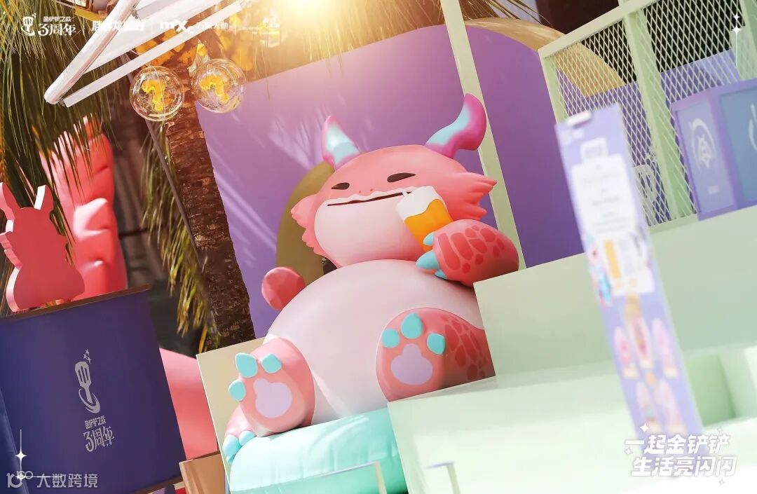 在三周年庆典上,胖胖龙化身为最可爱的派对主角,活跃在10+精心设计的快闪空间中,分布于水广场、高街、里巷商户等地。这些空间设计独特,让玩家们随手一拍都能出片。