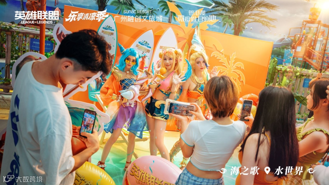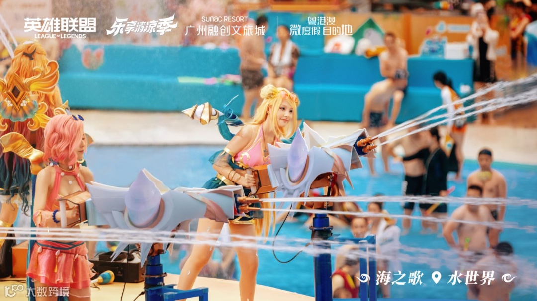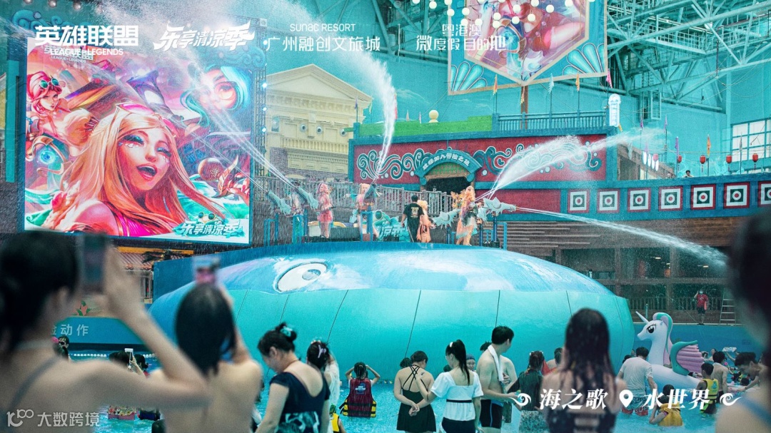 活动深度挖掘电竞IP元素与乐园的契合点,将广州融创水世界与《英雄联盟》“海之歌新版本”进行结合,策划打造含音乐节、COSER大秀、水枪大战、毛巾派对等多个主题内容,满足你对清凉一夏的所有想象。