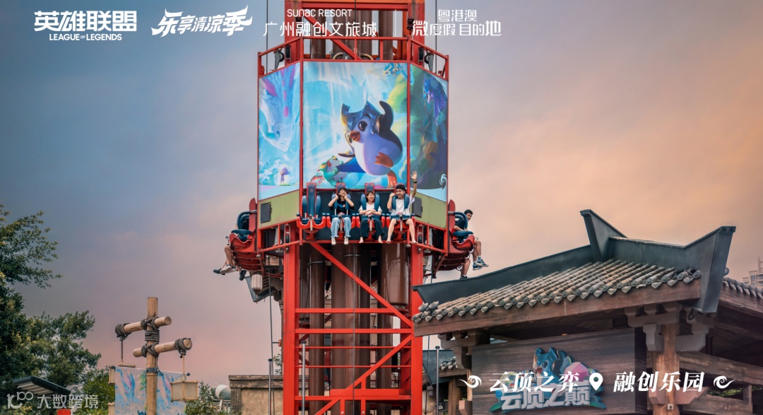 广州融创乐园与《英雄联盟》“云顶之弈三周年”主题元素结合,乐园内“云霄塔”化身【云顶之巅】主题互动体验区,游客玩家们现场探索云霄塔的奥秘,走上决战“云顶之巅”选秀台,参与儿时爱玩的套圈圈,还可以带着小小英雄彩绘,享受“云顶巨龙之境”带来的惊喜官方周边!