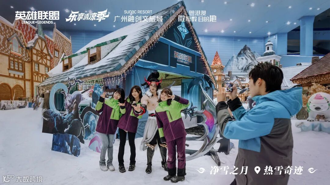 广州热雪奇迹结合《英雄联盟》“净雪之月新版本”,对园区实景进行创意升级打造,“净雪之月主题神秘雪屋”新场景惊喜亮相,踏上银白色的雪地,扑面而来凉意,一恍惚,仿佛穿越进了英雄联盟的雪世界里。现场还能解锁凯隐、凯特琳最新皮肤,给游客玩家带来惊喜彩蛋!