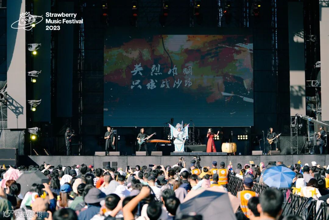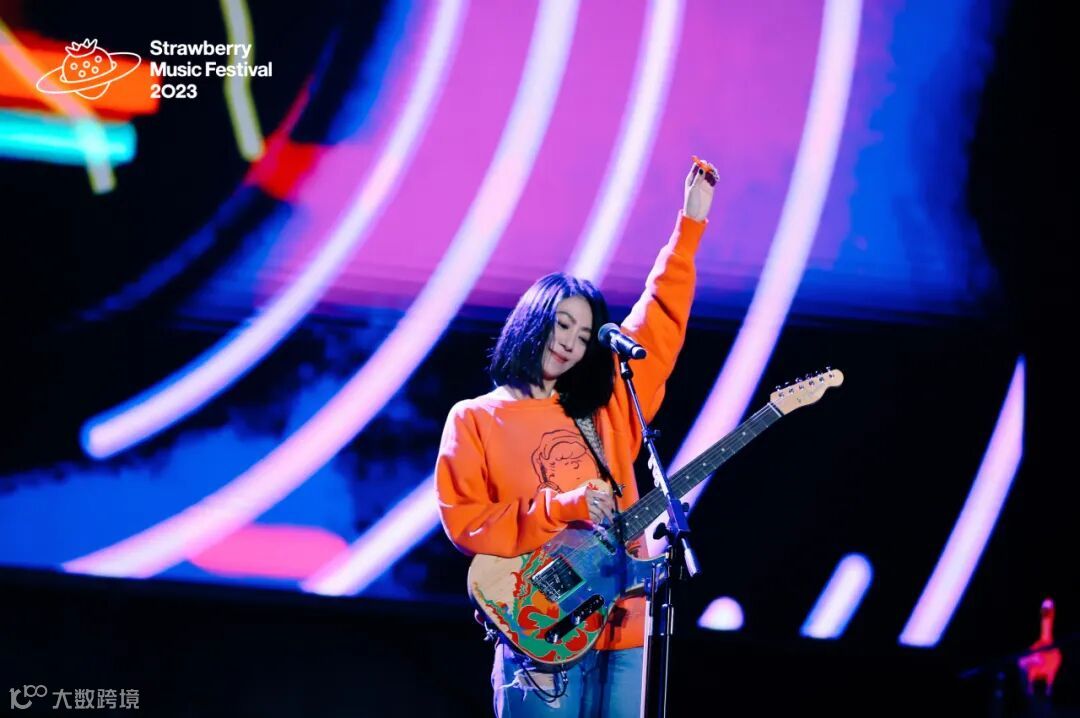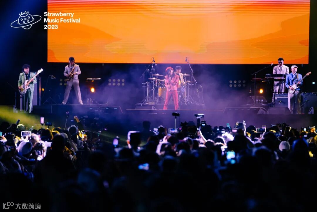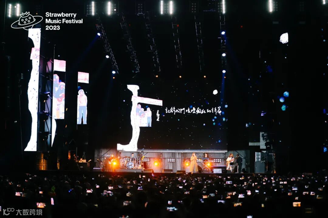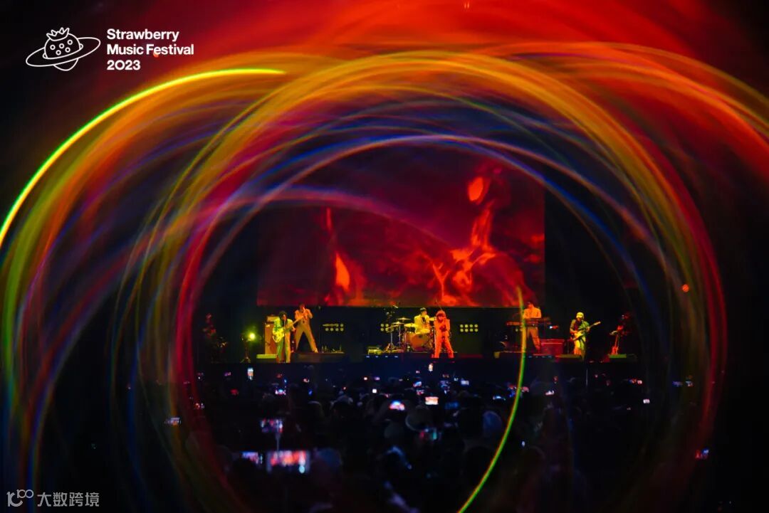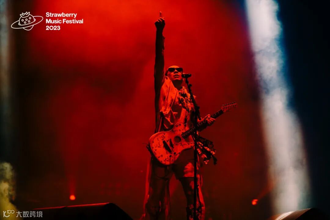 “今夜二手玫瑰来解忧”,当东北的风吹到温暖的南方,二手玫瑰时隔多年再次来到草莓音乐节舞台,为两日的演出献上华丽收尾。在二手玫瑰张力十足的舞台表现力下,《仙儿》《青春啊青春》《舞曲》掀起一阵又一阵情绪高点,最后一首《我要开花》将夜晚的狂欢氛围点燃,写下一个难以抽离的冬日记忆。