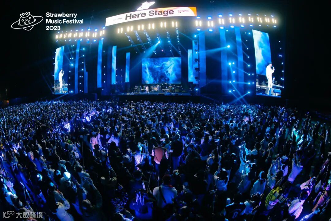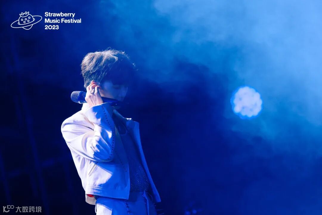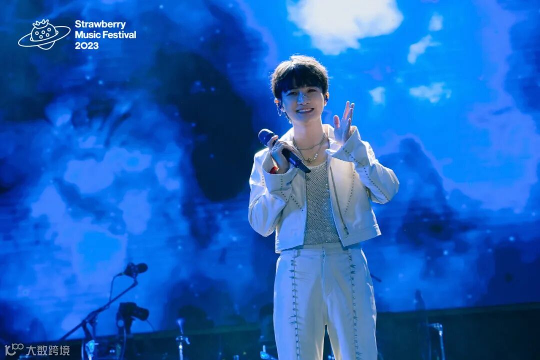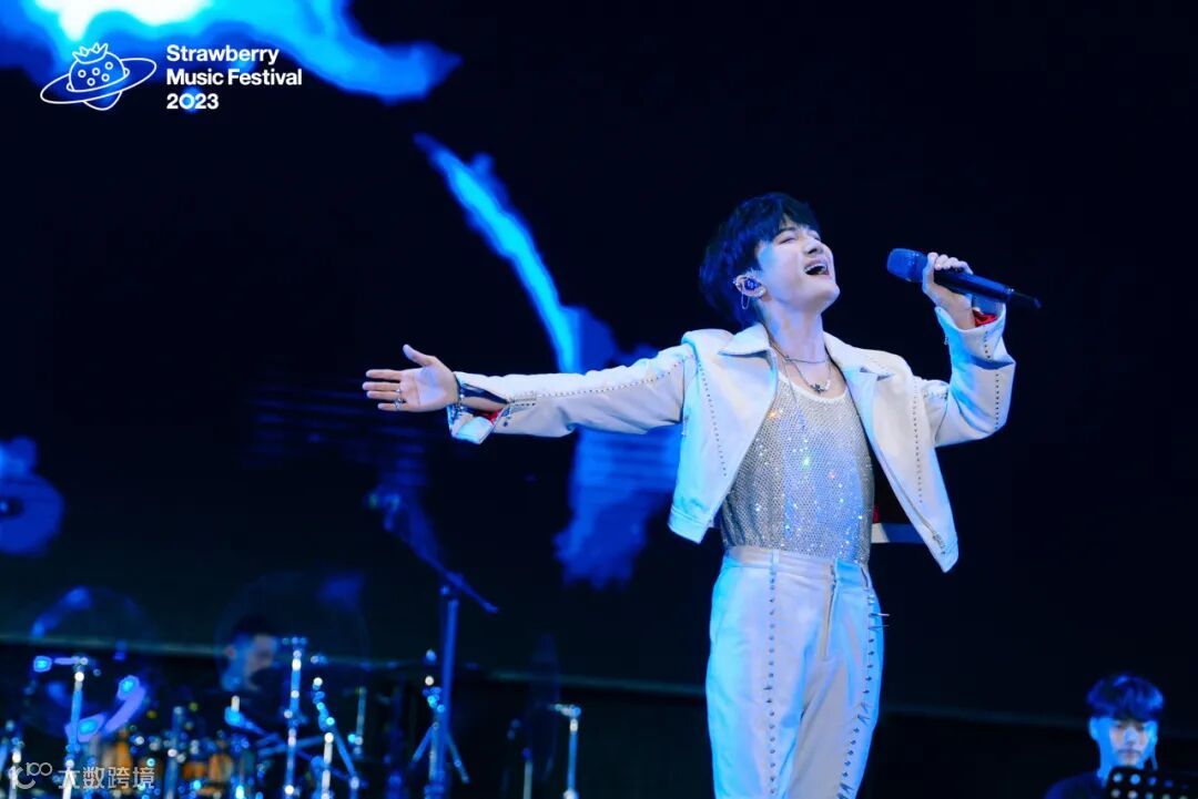 一片蓝色海洋荡开,伴着温暖的音乐,周深的草莓音乐节首演开启,等待台下观众的,有不期而遇的惊喜,还有周深悉心预备的“礼物”。在“只要你需要,我便会开门”的《望》演唱过程中,天空恰巧划过一座飞机,顺着航向望去,如画般良辰美景,目光和情绪便陷入了周深的音乐漩涡。粤语为词的《敢爱敢做》作为压轴曲目,不仅为广州观众抹上亲切熟悉的本土色彩,同时与台上台下默契合唱的互动中,圆满了一个美好的夜晚。