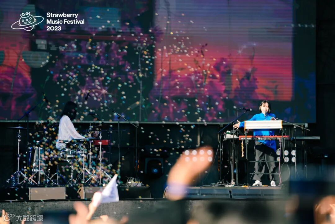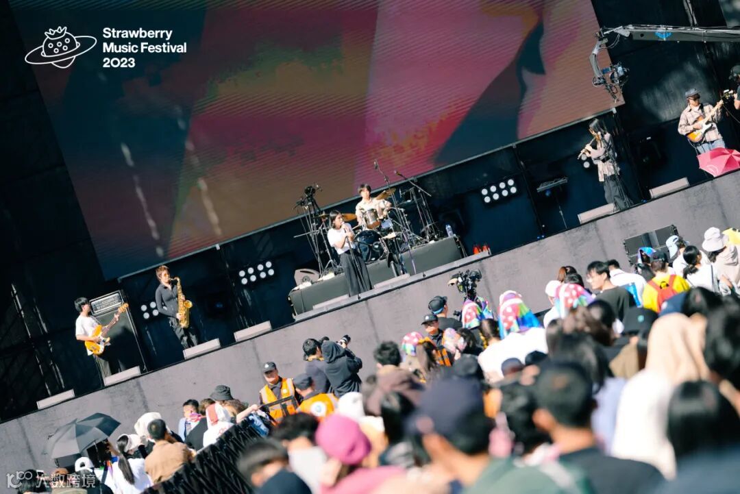 来自广州的异国人,以今年出版的新专辑中的《从日落大街到安卡拉》为第二天的「草莓Here」舞台开场,少年独有的自由不羁、对时代群像的观察和思考,都在阳光下闪闪发光。《航向北海》《无声浪潮》《人间分类》等旧作,在主唱独特的音色加持下,附上了东南沿海城市的暖湿感,令人倍感亲近。