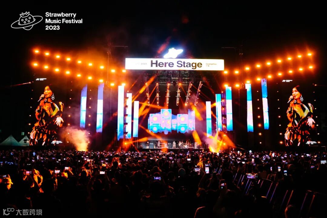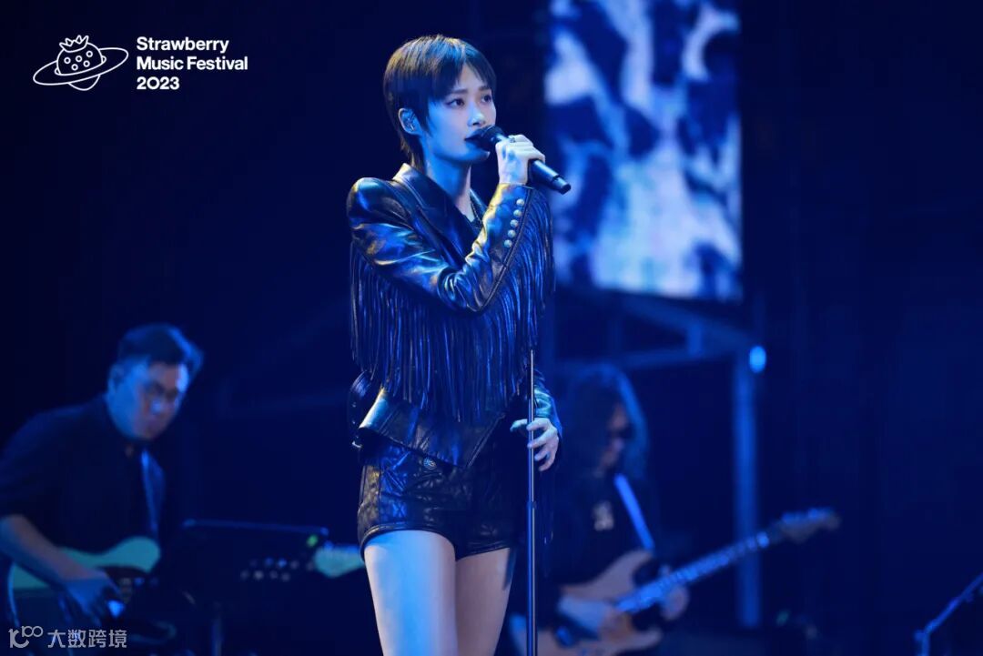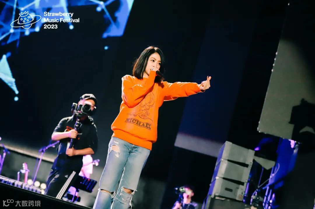 期待已久,「草莓Here舞台」最后一位表演嘉宾——李宇春,登台迎来首日气氛高点。春春带来新专辑中的《潮水凶猛》音乐节首演,这属于广州草莓的惊喜令人触动不已。歌曲间隙,春春还与台下观众见老友般聊起了“粤语作业”、巡演计划和“演唱会演习”等彼此默契的话题。全场乐迷的合唱更是给阿空带来不少震撼,与热爱连接的力量,使人热泪盈眶。