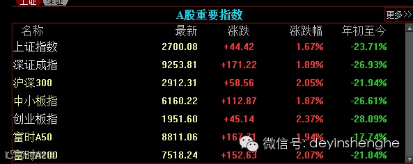 自周二起,A股已经连跌三天,周二到周四单日跌幅分别为6.42%、0.92%、2.92%。周五开盘不到一小时,沪指就涨逾1.75%,深成指涨1.95%,创业板涨2.47%。券商股一枝独秀,涨近6%。通信、计算机、电子、保险、石油矿业开采等板块涨逾2%。
