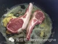 6.转中火 羊排丢进去煎一分钟 扣锅盖煎两分钟