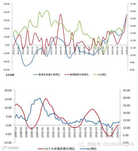 食品价格为什么上升这么快?尽管很多人以节假日因素、天气等理由来解释食品,但如果我们以广义货币供给M2来看一下不难发现,它的回升(2015年二季度后)与这轮食品价格的快速上涨基本上是同一过程。