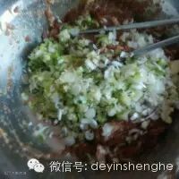 1. 羊腿肉剁烂,打入半碗花椒水,放入盐料酒生抽搅拌均匀