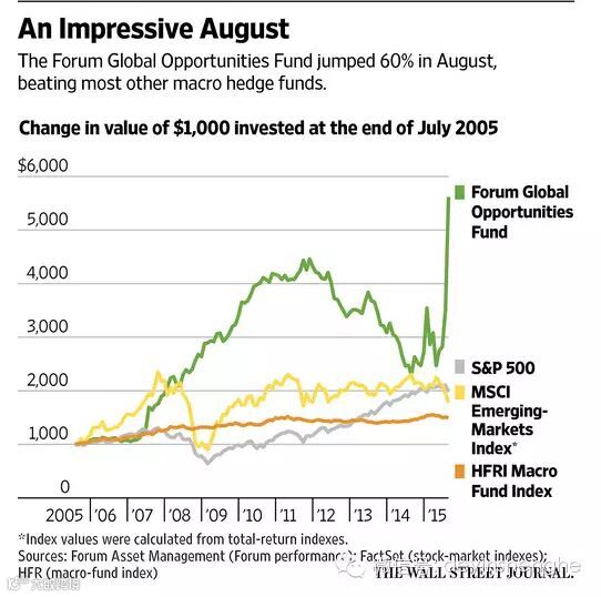Forum Global Opportunities Fund今年的表现和那些押注债券、股票和货币的大部分宏观对冲基金相比形成鲜明反差,后者上月平均收益为-1.2%,今年1-8月收益为-0.8%。