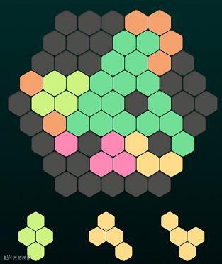 欢乐六边形是一款六边形消除游戏。将六边形小块移动到六边形的相对应的区域连成一条线即可完成消除得分,每次会有不同形状的小块出现,供你选择,直到游戏给出小块无法填充,游戏结束。