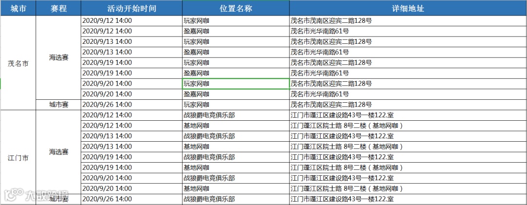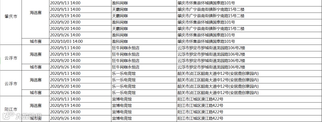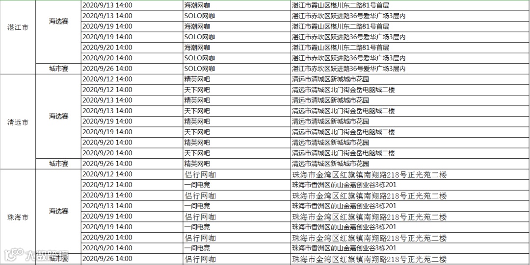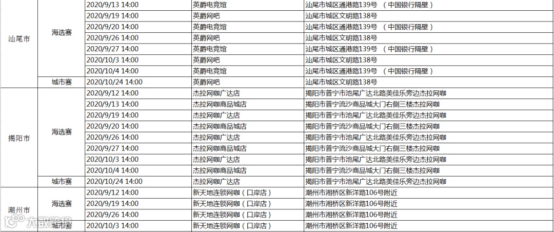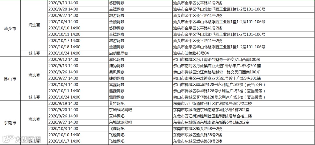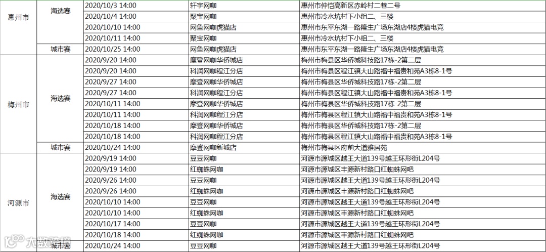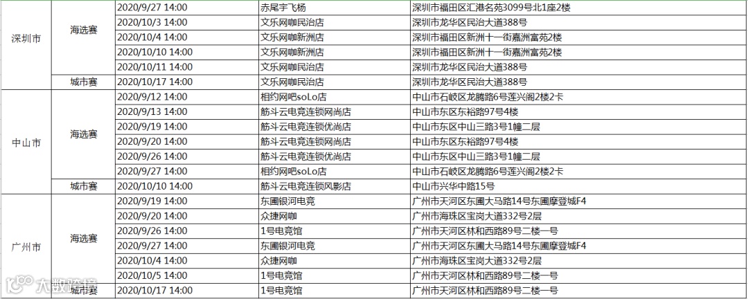 海选赛&城市赛网点一览