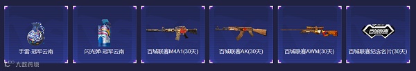 对于普通玩家,百城期间每周可抽取一次道具(抽奖当天需游戏一局),奖池包括雷神、冠军之心、冠军之怒等。对于参赛玩家,有参赛即得的百城联赛套装武器名片奖励,也可按照不同赛段不同名次领取不同奖励,奖池一般为人民币+游戏道具。赛事皮肤系列(冠军)、王者系列、网剧限定道具、百城系列(武器冠军名片)等,全国赛冠军将获得5万人民币奖励。越到后面的比赛,奖励越丰厚,三种参赛渠道均可拿到最高奖励哦。