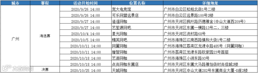 每场前两名队伍可晋级城市赛
