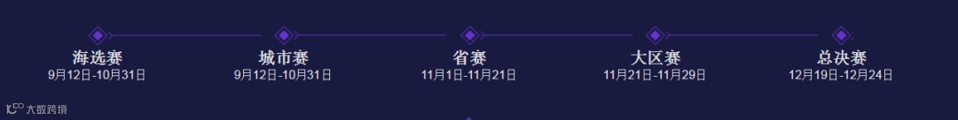 赛事将会经历周赛、城市赛、省赛,大区赛,总决赛五个阶段