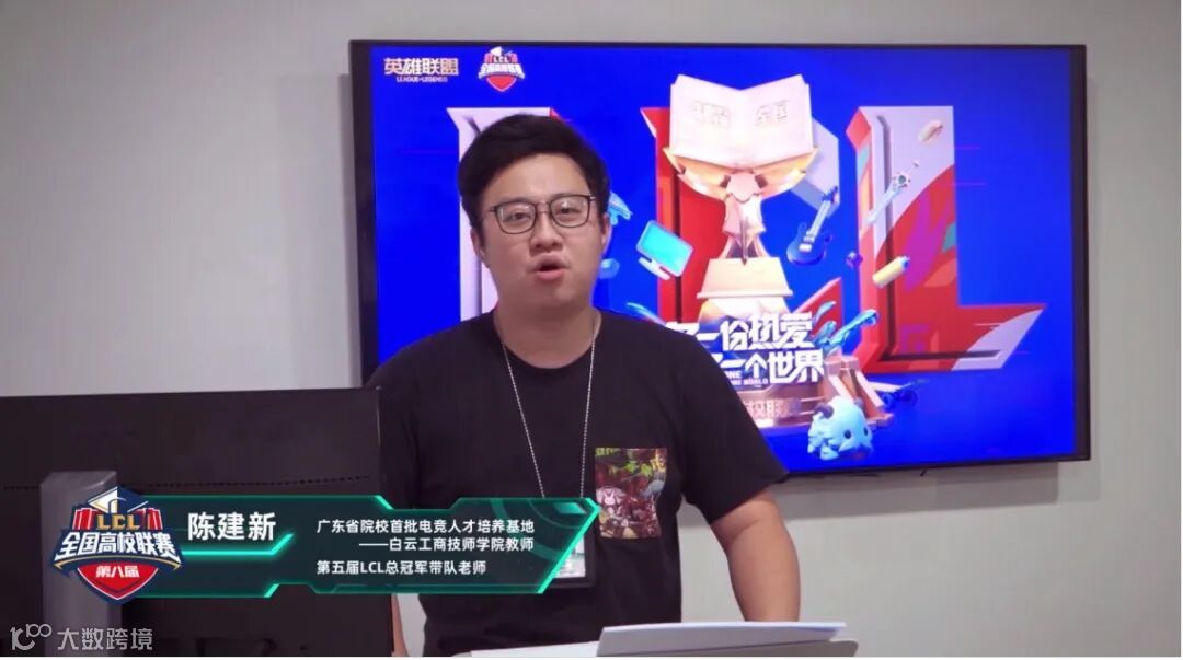 比赛正式开始前,来自广东省院校首批电竞人才培养基地的电竞专业教师、第五届英雄联盟全国高校联赛总冠军带队教练陈建新,向大家科普电竞人才产业相关知识,也为参赛同学们加油助威!