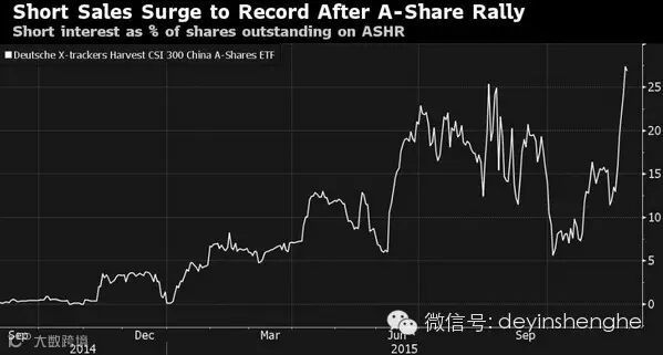 据Markit与彭博汇总的数据,美国最大的挂钩中国A股交易所交易基金(ETF)的空头头寸过去两周增加一倍多,相对于流通股的比例在11月27日达到28%的纪录最高水平。这样的做空程度上次出现于6月份,随后中国股市急转直下市值蒸发5万亿美元,证明了这些空头的先见之明。