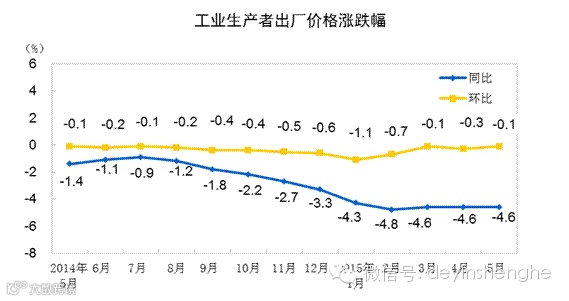 5月份,工业生产者出厂价格同比下降4.6%,同比降幅与上月相同。分行业看,石油和天然气开采、石油加工、黑色金属冶炼和压延加工、煤炭开采和洗选出厂价格同比分别下降36.1%、18.6%、15.7%和14.0%,合计影响本月工业生产者出厂价格总水平同比下降约2.9个百分点。