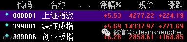 多重利好轮番刺激下,A股今日绝处逢生。沪指早盘低开,大跌5%后逆势上扬,午后连续收复4100、4200,收涨5%,创2009年来最大单日涨幅 。创业板巨震13%后收复2800。券商、银行领跑两市。沪深300指数期货大涨8%。