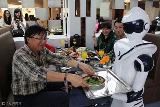 用机器人来代替服务员,除了吸引顾客,也能减低成本。