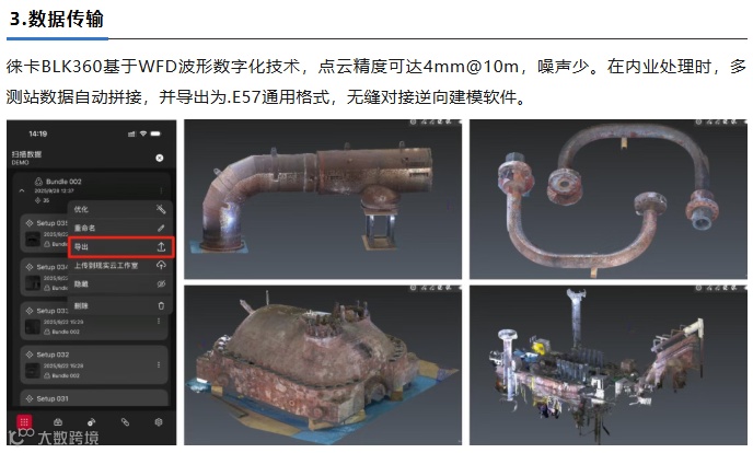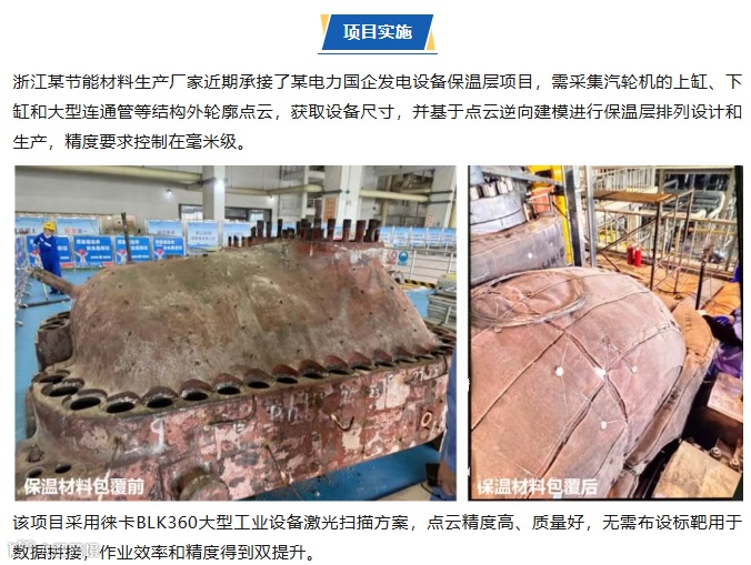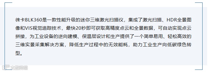 如何精准测量汽缸、连通管等异形工业设备的外形,始终是行业痛点。其难点在于,既要保证保温层覆盖的完整性与厚度达标,防止能源浪费;又需掌握保温层与设备的贴合状态,防止因间隙过大影响节能效果。这就对设备本体及保温层相关尺寸数据的全面性、准确性提出了更高要求。对此徕卡BLK360三维激光扫描仪带来了精准、高效、智能的解决方案。