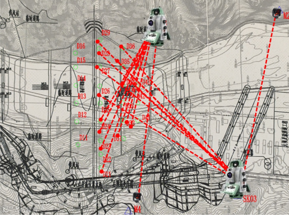 现场方案多测站示意图