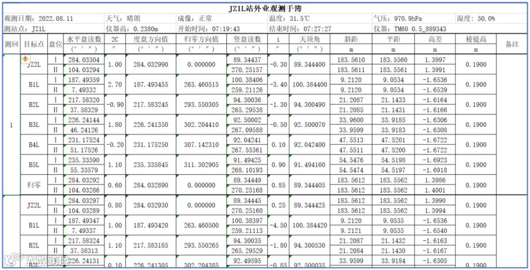 外业观测手簿