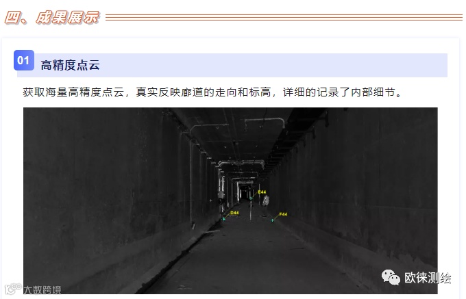 导读:一次外业采集,可以满足多种不同的应用需求,如平面图,立面图,以及廊道内部设施的属性信息,同时作为数据存档,用于后期管道安装模拟等应用。